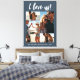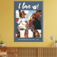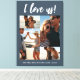 Canvas de colagem de fotos do script de pincel azul e branco moderno "Eu amo-nos" com nome e ano personalizados.