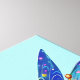 Uma jovem fada com asas azuis coloridas e intrincadas possui um instrumento musical corado, misturando elementos de fantasia e música. Ela veste uma roupa vibrante com uma pulseira decorativa, criando uma aparência caprichosa e encantadora.