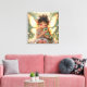 A cute child's wall art featuring a sweet little fairy girl holding her baby dragon. Cute anime chibi illustration.