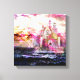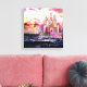 Um espantoso nascer do sol se rompe em ouro, rosa e esplendor roxo sobre um castelo de conto de fadas perto do oceano.