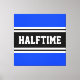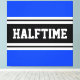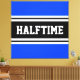 Este esportivo, design atlético, apresenta dentro de texto HALFTIME ousado, uma faixa preta larga com faixas duplas de corrida branca contra fundo azul brilhante. O texto neste design pode ser personalizado.