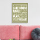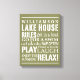 Trendy e arte personalizada em uma suave, suja, verde-khaki com letras em branco. Personalize com seu nome familiar e informe a todos as "regras" da casa do lago que precisam ser seguidas. De ir barco a dormir frequentemente, a ordem do dia é RELAXAR! Personalize facilmente a cor do plano de fundo para se adequar à sua decoração, clicando no botão laranja "Personalizar" na imagem e, em seguida, clicando em "Editar" e, em seguida, em "Fundo". O tamanho da fonte do nome também pode ser ajustado dessa forma.