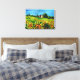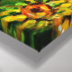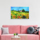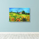 Paisagem da Toscana, cor, vibrante e expressiva beleza da flora e campos de Verão italianos em laranja amarelo vivo, verde, castanho, cor azul, lindas flores, ciprestes e oliveiras, antiga casa de fazenda rustica sob o céu azul.Pintura acrílica em canvas.