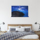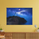 Esta incrível foto do Getty Images apresenta um farol em uma ilha no meio do mar à noite com muitas estrelas e a Via Látea.