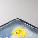 Uma tela impressa com um farol vermelho e branco e uma bola colorida de praia descansando contra sua parede. Um casco de cinza voa à distância. Um sol amarelo sorri feliz no céu. Nuvens tempestuosas se fechando por trás. Imagem digital criada com aquarelas.