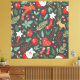 Um padrão festivo de férias com renas, ornamentos e verde sazonal sobre fundo escuro. Perfeito por adicionar um toque de capricho à decoração de Natal.