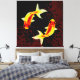 Uma versão curada de uma pintura safra de dois peixes dourados circulantes