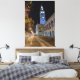 A imagem captura uma vista noturna do icônico Edifício Ferry de São Francisco, iluminado contra um céu escuro. A torre de relógio alta do prédio domina a cena, com sua fachada branca e detalhes intrincados. A face do relógio está visível, adicionando um toque de desfasamento temporal à imagem. As janelas e colonatos arcaicas do edifício criam um sentido de grandeza e história.