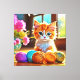 Descubra um gatinho branco e cor de laranja que brinca com bolas coloridas de fio num ambiente interior confortável com flores. Perfeito para amantes de gatos (Esta Design Feita Com IA). Faça a ordem hoje e encare a alegria de Comprar!
