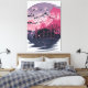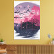 Arte vetorial original de uma cerejeira floresceu na natureza durante o pôr do sol.