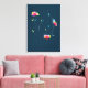 design floral cor-de-abstrato cor-de-rosa inspirado pela arte japonesa. Este design de flor rosa sobre fundo marinho com botões azuis é uma estética limpa simples e moderna.
