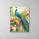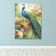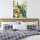 Arte de muro de canvas com a pintura antiga de um pavão elegante azul e verde numa floresta reluzente de floral e verde cor-de-rosa pincelado.