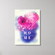trabalho de arte de aquarela de flores rosa-chic e burgundy dentro de um belo vaso azul e doce lar, tipografia canvas.