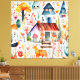 Padrão colorido de cottage floral. Padrão cottagecore colorido e fofo. Animais florais encantadores, casinhas, árvores adoráveis, design encantador para decoração de casa infantil, acessórios para crianças e bebês, design adorável e encantador. Design encantador para festa de aniversário infantil, material escolar infantil. Design encantador para acessórios de bebê, design encantador para presentes de festa de baby shower. Padrão de design romântico, doce e fofo para acessórios de crianças e bebês, para decoração de quarto infantil, decoração de quarto de bebê, decoração de berçário.