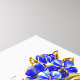 Jewelry, blue, sapphire, sparkling flower butterfly with wing decorated with blue, precious flowers with gold leaves on white background.