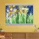 Uma paisagem abstrato digital de árvores brancas com folhas secas no ar