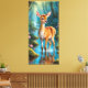 Uma pintura encantadora de um veado parado em um riacho cintilante, cercado por um verde-luxuoso e luz solar aplicada em uma floresta mágica.