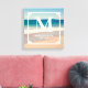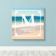 Crie sua própria arte de parede personalizada em tela quadrada com foto do beach com monograma de casamento.