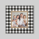 Esta canvas de arte de Natal estilo fazenda apresenta um espaço de fotos de família quadrado personalizado, formado por uma borda bronzeada, com verificação de búfalo preto e branco / fundo com padrão de xadrez. Dica da foto: recorte sua foto em forma quadrada antes de carregar.
