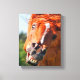 Engraçado Fotografia Rindo de Cavalo em cores vivas. O cavalo está sendo bobo mostrando seus dentes e agindo doido com um sorriso grande. Excelente para amantes de cavalos.