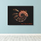 Uma imagem fractal espiralante (vermelha, amarela e laranja), de cor múltipla, parecida com uma ave ou um dragão de penas, sobre um fundo escuro. Adicione seu próprio texto.