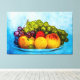 Vista aproximada - vida útil - de uma placa de porcelana branca preenchida com uvas verdes e vermelhas, morango, cereja, pêssegos e uma fruta de damasco. O presente da temporada de verão. Saúde e vida feliz. Fotografia texturizada.
