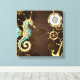 Impressão Em Tela Fundo de madeira com cavalo de mar mecânico