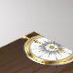 Fundo de madeira castanho com fundo marinho, cordilheira mecânica, volante antigo, âncora de ouro e diversas engrenagens de ouro e latão. Estilo Steampunk.