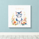 Impressão Em Tela Gatinho Cinza Personalizado em Flores Rosa