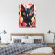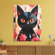 Impressão Em Tela Gato Preto Adorável Com Flores Rosa