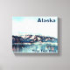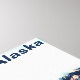 Uma imagem estilizada de uma geleira costeira no sul do Alasca, como vista do alto mar. Pequenos pedaços de gelo flutuam na água e a cena se reflete na superfície da água. Text reading, Alaska" (Leitura de texto, Alasca) também é exibido. Você pode remover isso facilmente se desejar. Adicione seu próprio texto adicional.