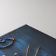 Um retrato cativante capturando a beleza da cabeça de um gato olhando em estilo. Este trabalho de arte de abstrato apresenta linhas gravadas em tons de azul, laranja e roxo, colocadas sobre um fundo azul escuro e sombrio. Descubra o mistério deste olhar artístico felino, adornada com sutis elementos coloridos gravados.