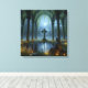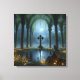 Uma mulher reza por uma velha cruz numa noite iluminada.