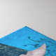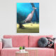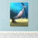 Renderização digital 3D de um golfinho fofo sobre fundo oceânico de fantasia azul