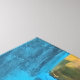 Uma pessoa e uma cabra estão em primeiro plano, olhando para a frente de formações rochosas vermelhas sob um céu azul dinâmico. A pintura é caracterizada por cores arrojadas e pinceladas expressivas, dando a ela uma sensação vibrante e viva.
