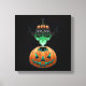 Halloween Horror Punk pop cultura fantasia arte verde zombie monstro verde com Jack o Lanterns, abóboras e gato preto vestindo uma máscara do crânio.