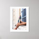 A moving and detailed photograph that captures the essence of faith and religious tradition. The image focuses on the hands of the faithful carefully and reverently holding a small statuette of Our Lady, positioned on the windowsill of a historic window with iron bars. The contrast between the texture of the ancient stone, the skin marked by time, and the vibrant colors of the saint's blue mantle creates a powerful visual narrative about spirituality, protection, and cultural heritage. Ideal for those seeking a piece that conveys peace, hope, and the strength of human connections through shared belief in moments of religious celebration.