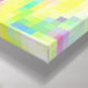 Gorgeous perfectly pixelated dragonflies flit on a hazy rainbow background.