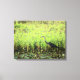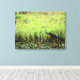 Uma fotografia de um Herão Azul Excelente caminhando através de um lago. A superfície do lago está coberta de lírios de água. A lagoa está rodeada de pedúnculos de plantas verdes, que está perto de um campo. Fotografia Copyright ©2021 Kimberly J Tilley.