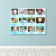 Personalizou esta arte de canvas, adicionando as fotos do seu bebê. Você pode fazer o "primeiro ano" ou qualquer período de tempo durante sua vida, como cada aniversário ou cada ano na escola até seu casamento. Fundo azul.