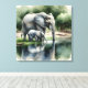 Impressão Em Tela Ilustração de Aquarela de Mamãe e Elefante Bebê