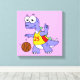 Impressão Em Tela Ilustração De Um Stegossauro Jogando Basquete.