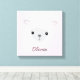 Apresentando uma ilustração fofa e moderna de carneiro (ovelha) com um script para o nome. Personalize esta tela de pintura de berçário de ovelhas. Fundo rosa.