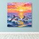 Impressão Em Tela Impasto Dolphins and Ocean Waves