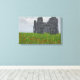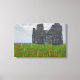 Uma cena 3D criou em Vue, mostrando o local de uma batalha antiga, com apenas as ruínas desmoronantes de uma torre de pedra medieval e flores vermelhas na grama para comemorar. A chuva em queda e o efeito de aquarela macia aumentam a tristeza da cena do topo da colina.