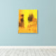 pintura de abstrato acrílico em amarelo, laranja e número queimado por R. Trickett