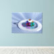 Uma imagem 3D criada em Vue, cheio de reflexões e luzes brilhantes de todas as direções. Cinco esferas coloridas de vidro azul, rosa, turquesa, laranja e diamante permanecem em uma pirâmide cercada por um anel branco translúcido. Eles sentam-se sobre um fundo deslumbrante de raios claros, azuis e brancos que convergem sob as cinco bolas de cristal.