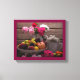 Vida tranquila com Mesa de decoração com tema roxo com flores e Canvas de fruta para adornarem suas paredes vazias Perfeito para festas