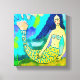 Minha pintura abstrato digital colorida de uma sereia impressa na canvas da galeria