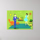 Esta Impressão de Tela Esticada do Casal Moderno de Meio século parece uma cena de uma comédia romântica. A design de arte minimalista ao estilo de 1960 apresenta um casal de desenho animado atraente desfrutando de uma noite romântica em casa. A sala sofisticada destaca uma parede verde de pedra com um fogo em chamas na lareira. Os fornos na sala incluem uma cadeira laranja, salgada com bancada correspondente, um relógio vermelho, starburst wall, um monitor amarelo, sputnik, e uma mesa lateral laranja, que abriga um gravador verde e portátil. No chão ao lado da mesa final, um registro de vinil pode ser visto saindo de um cobrir de álbum de kitschy. No centro do chão verde, há um tapete grande, retangular, lacrimogêneo. No meio da cena, temos um casal muito sofisticado. Há um homem suave em um terno azul real, camisa branca e gravata arco azul. O homem alto, escuro e bonito está olhando para seu adorável companheiro. A elegante mulher cabeleira está vestindo um vestido de aqua flouncy. Cada um deles segurando um vidro de cristal martini com uma azeitona flutuante. Saúde! Aqui está a noite perfeita em casa!